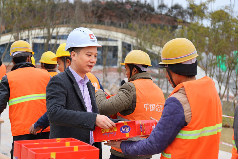 1月14日起,AG8集团集团工会开展以“严冬送温暖 慰问暖人心”为主题的慰问运动,公司总司理张成毅、副总司理罗洋划分带队慰问简州新城人才公园、标准厂房B项目现场,为坚守在建设一线的施工职员送去姜茶、饼干等慰问品;特殊嘱咐各人在户外作业,尤其是高处作业、带水作业时一定要做好保暖、清静步伐,避免因低温导致手脚僵硬造成清静事故 。